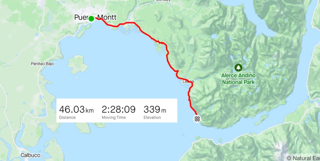 Disembarking on the other side, with the ramp dropping slowly as we approached, revealing the mist rising up off the steep rainforest, I truly got my first feeling of Patagonian scale. It felt remote already, a day’s ride out of the city. 10km along a quiet stretch of road and I made it to a campsite.