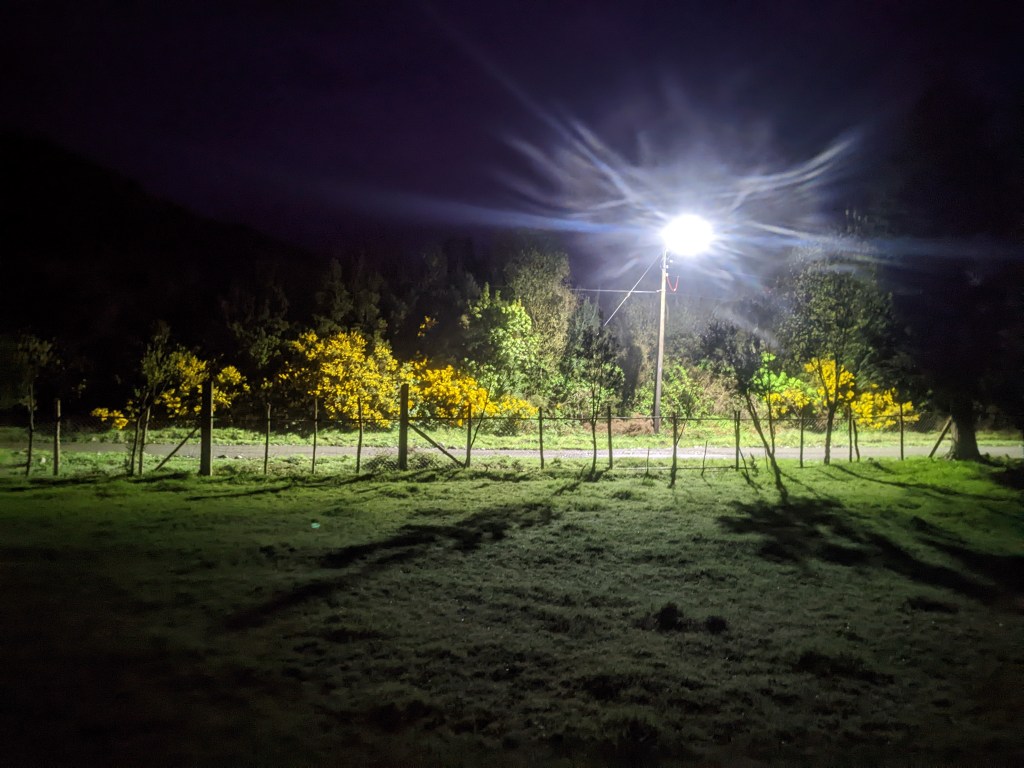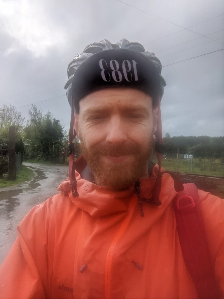 It got dark with cloud, I had to stop and put on my lights. I stopped again to take shelter but I was already soaked and at least when I was moving I wasn’t getting cold. With waterproof trousers pulled over my sodden shoes I carried on.