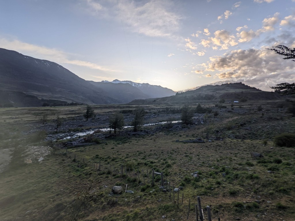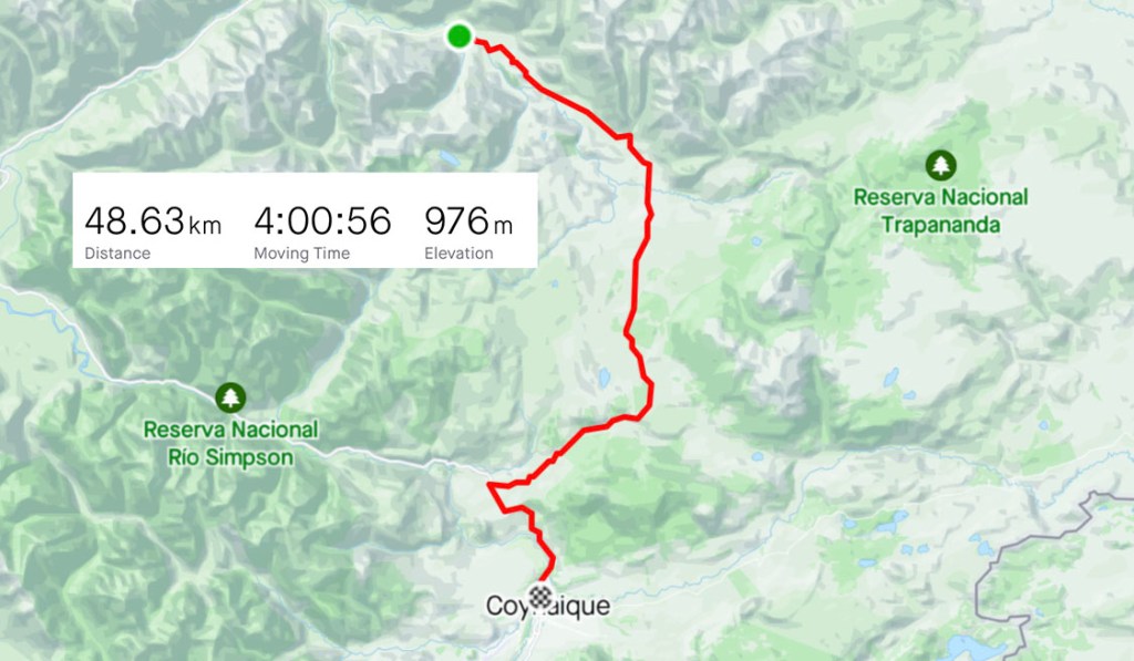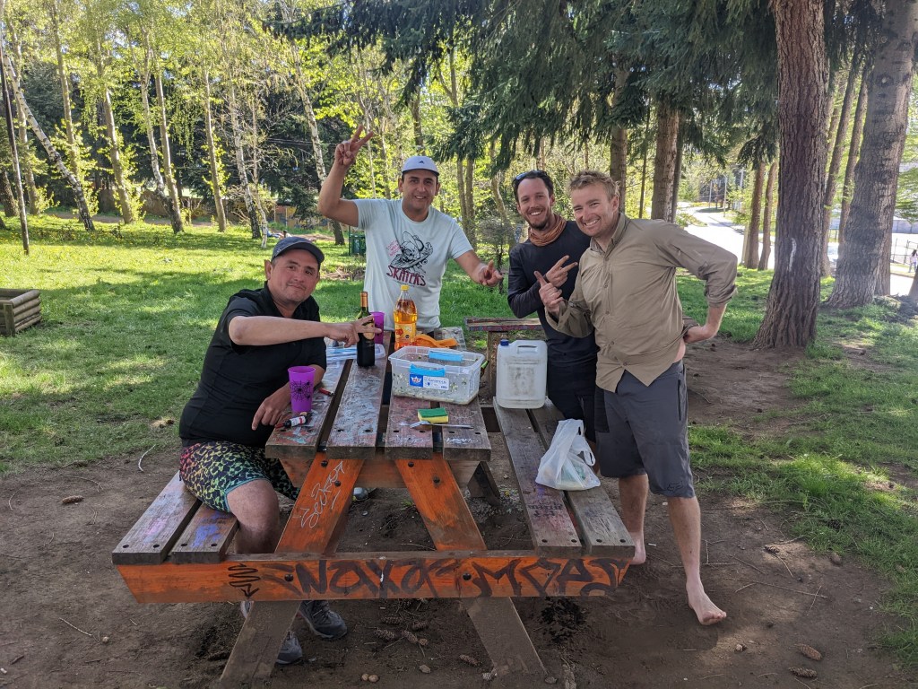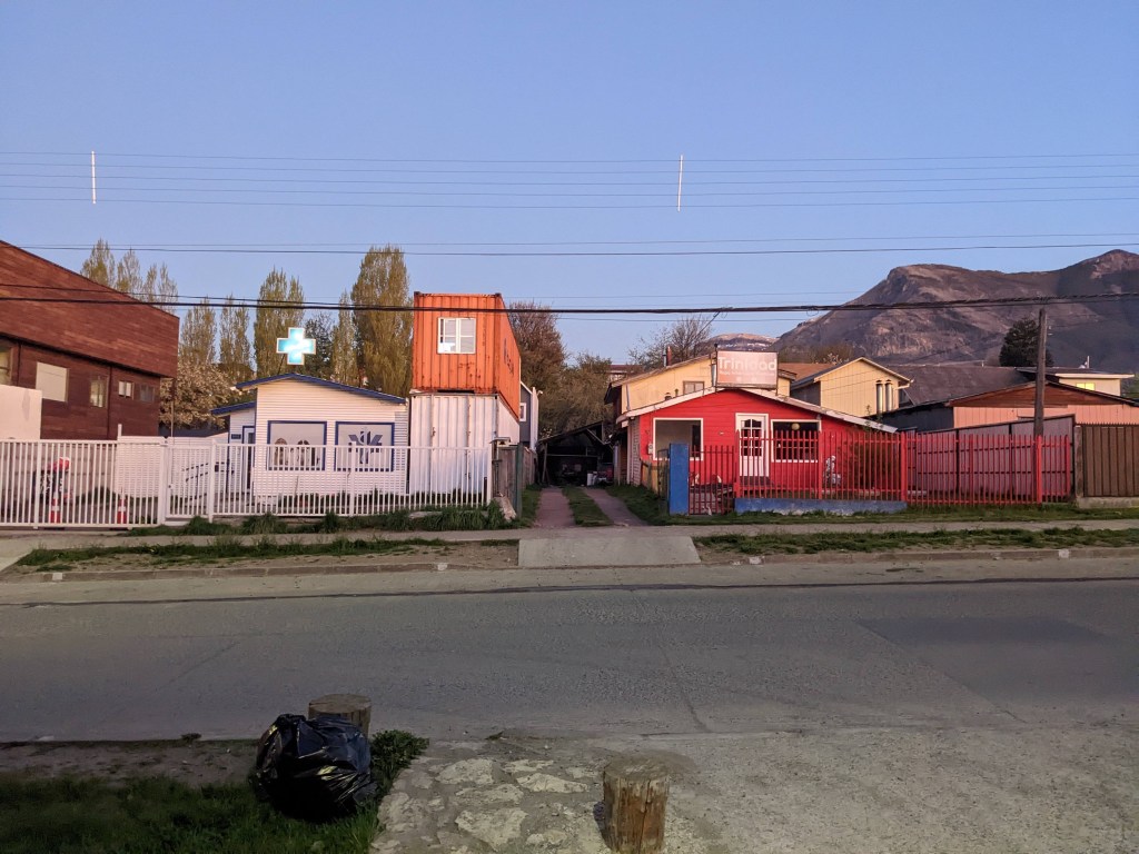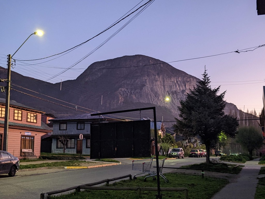 When Ben and Tom caught up it was downhill the whole way into the city, 20km away. The wide dirt track easily gave us space to pick lines and let gravity pull at the loaded bikes. We could see Coyhaique in the distance at the foot of the domed Cerro McKay and were soon in the suburbs. We collapsed at the first park we found and were waved over by two brothers drinking wine in the shade and eating home-made ceviche from a tub. They shared both with us and told us of their travels, Chilean songs playing from their pick-up parked nearby. We weaved through the suburbs and found an empty guesthouse near the central plaza which was full of people enjoying the Sunday evening sun.
