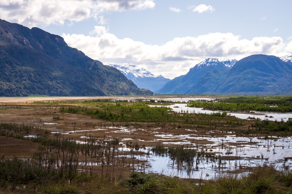 The next town I wanted to spend some time in was Puerto Rio Tranquilo, still 120km away. I’d set my mind on getting some distance done today, despite the slow feel of the morning, so I aimed for a roadside camp that was marked on an wild-camping app, a further 57km ahead. It turned out to be more strenuous than I thought, especially once the paving stopped for good, marked by a sign, and the gravel road slowed my progress. The road climbed out of Villa Cerro Castillo and then down into a marshland where cows grazed knee-deep in the mud. Cars and buses threw up dust as they passed and the headwind continued to blow.