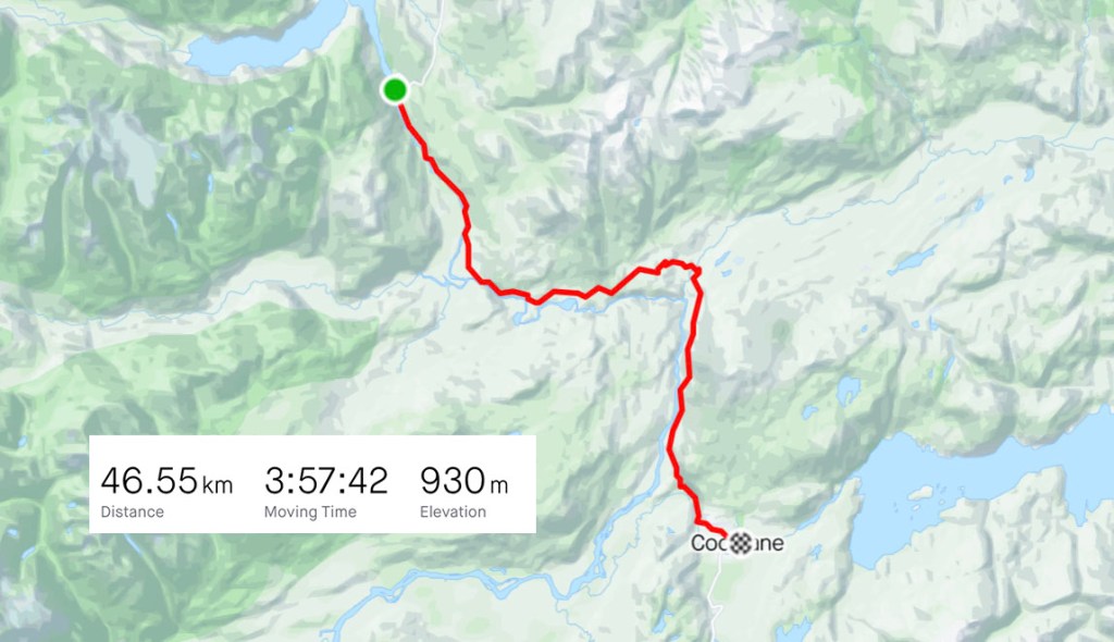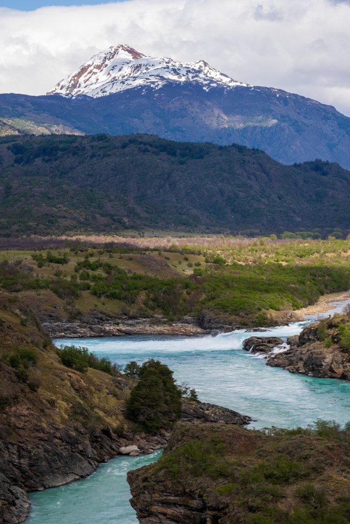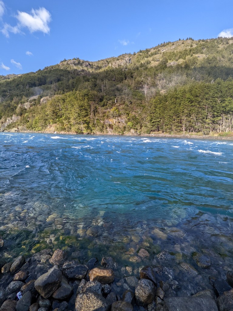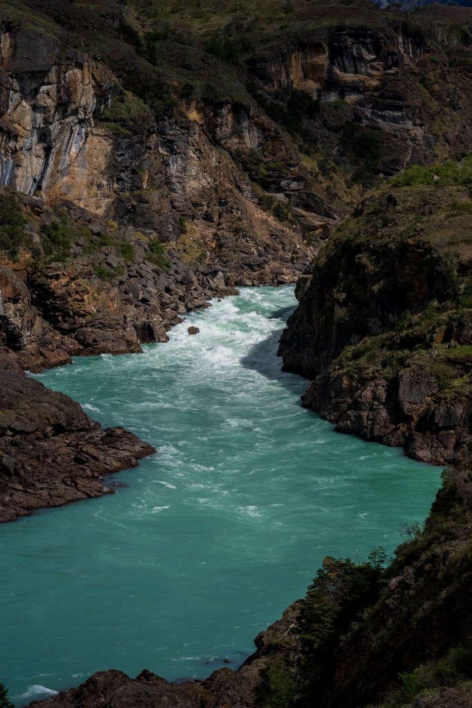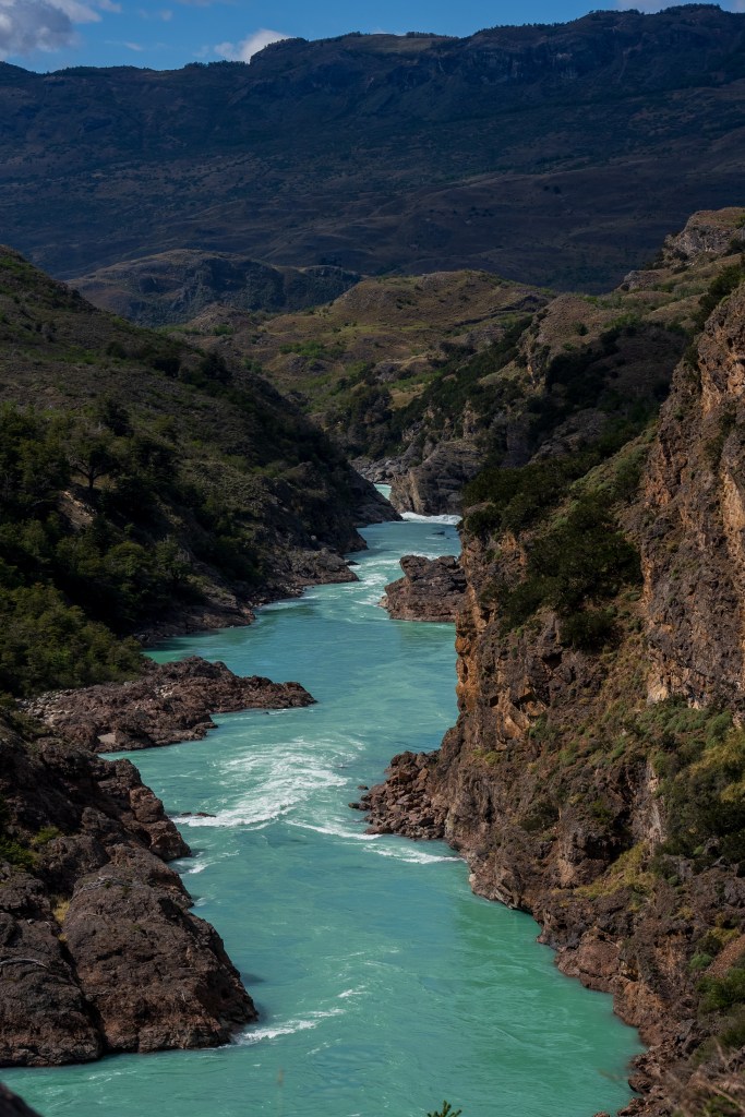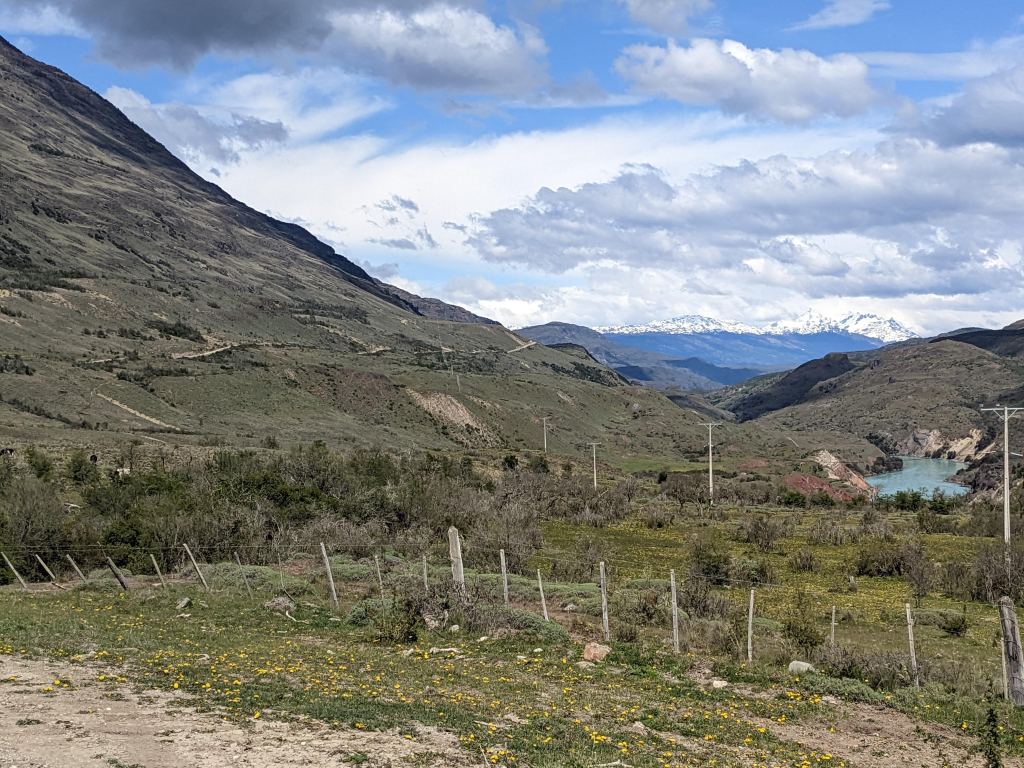The afternoon was a difficult ride. There was a fast and fun stretch of downhill with sections in channels blasted through the hills, followed by a longer stretch of climbing back up the other side. Past the entrance to the Patagonia National Park and along a slow incline around the edge of the mountain, still high above the river, the road turned towards Cochrane. There were works on the roads where huge dump-trucks were churning up the loose surface, I followed a convoy down the last hill into the town.