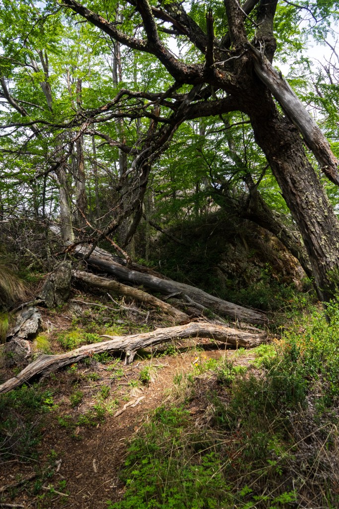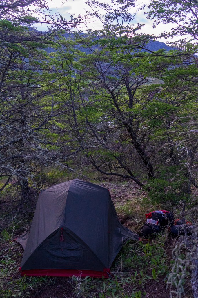 I was back on the road by 7am the next morning, a bus driver pointing me along the 4km road to the trailhead. I got to the ranger’s hut an hour before they opened so sat on the grass and made breakfast as the sun began to climb. When he arrived the ranger informed me that my intended route was still partly closed due to snow, still deep over the paths unseasonably late this year. Unfortunate in one way but the barbecue-altered plan that had me entering from the south meant I could still spend the day hiking a loop in the lower altitudes of the Tamango sector of the park. I left my tent and sleeping bag with the ranger and set off on a 20km loop towards Lago Cochrane, keeping my two-days worth of food in my pack. In the seven hours of dense woodland and dry rocky trail I didn’t see a single other person, even when overlooking the vast lake from the top of the climb no sign of boats or settlements, just deep blue water that that turned turquoise in the shallows.